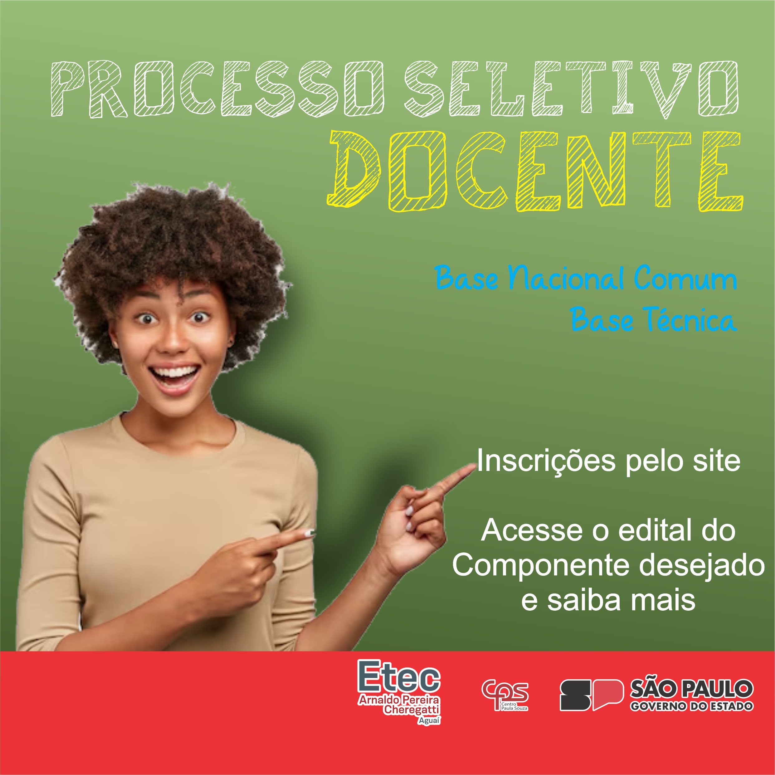 O Superintendente da ESCOLA TÉCNICA ESTADUAL ARNALDO PEREIRA CHEREGATTI, nos termos da Deliberação Ceeteps nº 41, de 9 de agosto de 2018, alterada pelas Deliberações Ceeteps nº 68, de 7 de janeiro de...