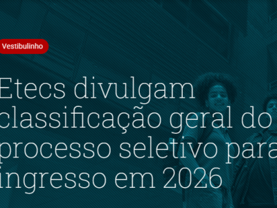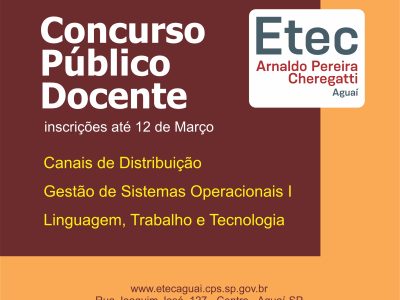Estão abertas as Inscrições para o Concurso Público para Docentes da Etec Arnaldo Pereira Cheregatti, clique no botão Inscreva-se do Componente desejado e acompanhe o Edital. Nº EDITAL DT. FIM INSCRIÇÃO COMPONENTE CURRICULAR 215/01/2026 […]