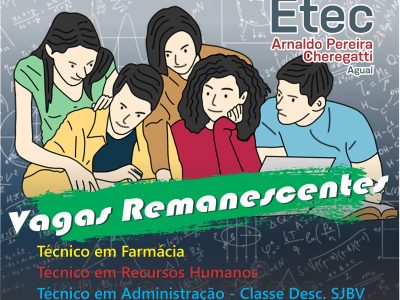 Nos dias 19 e 20 de Janeiro a Etec Arnaldo Pereira Cheregatti irá realizar as inscrições para o Ano/1º Semestre de 2026 para os classificados no Vestibulinho Etec. Os classificados na 1ª Lista, deverão comparecer […]