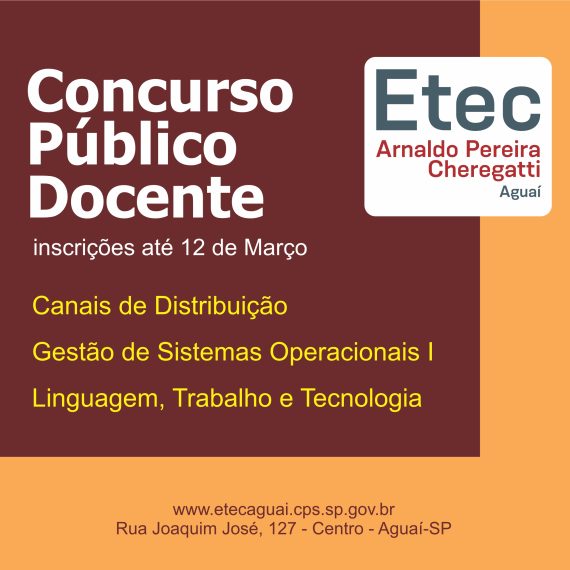 Estão abertas as Inscrições para o Concurso Público para Docentes da Etec Arnaldo Pereira Cheregatti, clique no botão Inscreva-se do Componente desejado e acompanhe o Edital.